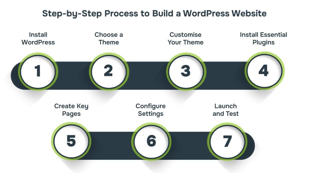 Having the right requirements in place ensures your WordPress website runs smoothly from the start. With essential elements set, the next step is to understand the process of actually building your WordPress website.